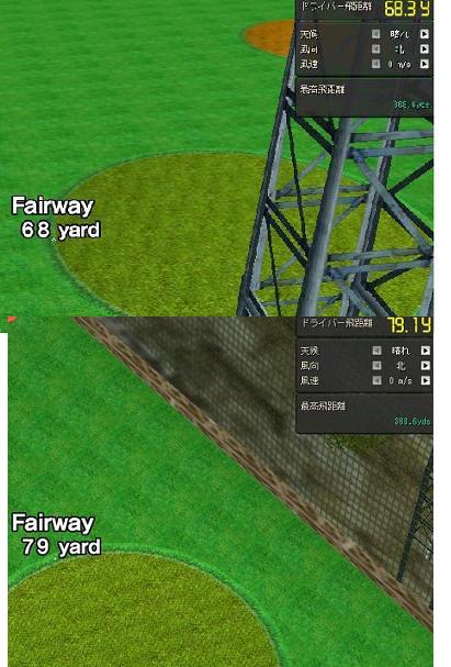 奥にピッタリに止まったのが画像下で79yでした。前回はこれが79,7ぐらいで、だいたい80yかな~と計算してました。