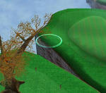 1Wのストレートで、このサークルの位置だと木には当たりません。(無風か微風の場合です。)サークルの中央先にくいが見えると思いますが、私はそれを目印にしています。