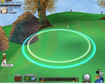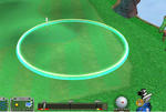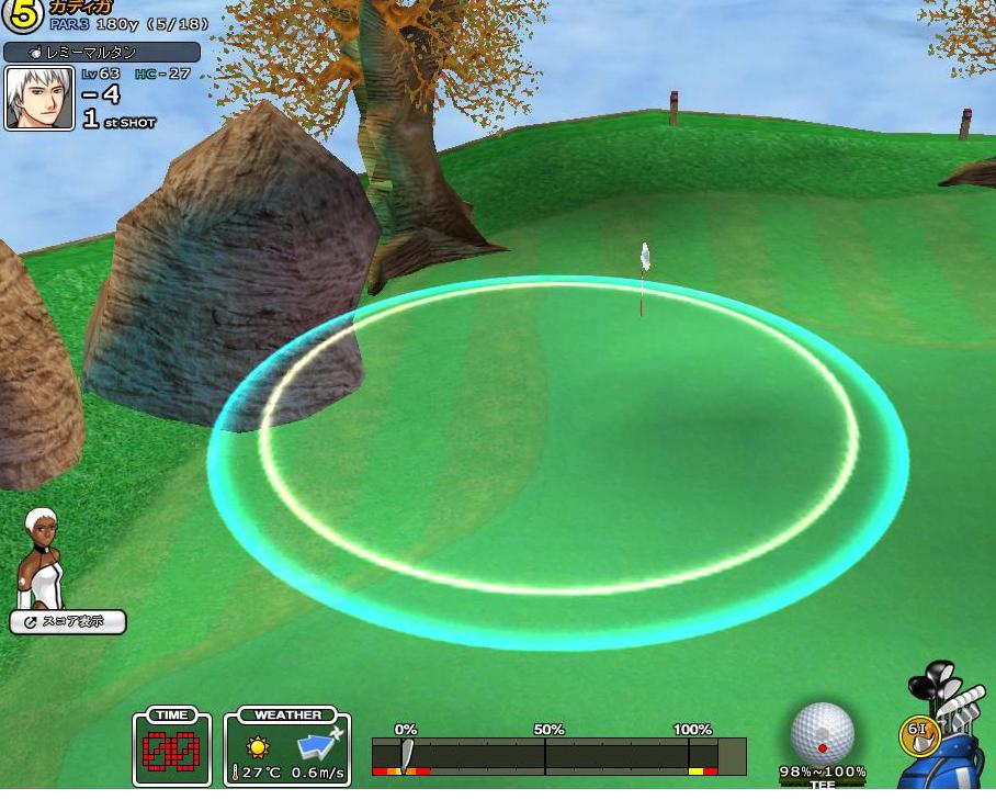 そして、今度はピンより若干左を狙って打つようにしています。上の左画像では風が少しあるので、無風の時より もう少し左狙いで打ちましたが、無風でもピンをサークルの中央には合わせないですね。