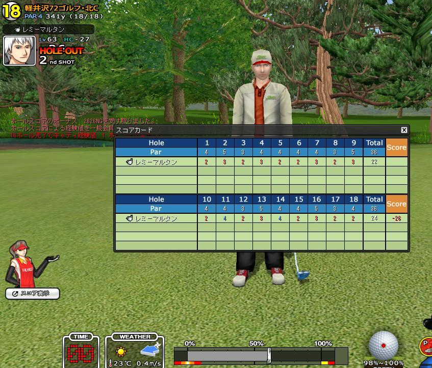 あ~あ、何やってるんだろな~。そして他のホールは無難にまわれてトータルー26で終了です。