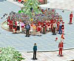 もうあきらめて、ロッカーにマジェを取りにいってから寝るかなと思い、ロッカーあたりまで行くと、右方面にサンタの服を着たプレーヤーがベンチにいっぱい座っていました。もしかしたらこの辺りにサンタがいるのかな~とおもいウロウロしてみました。