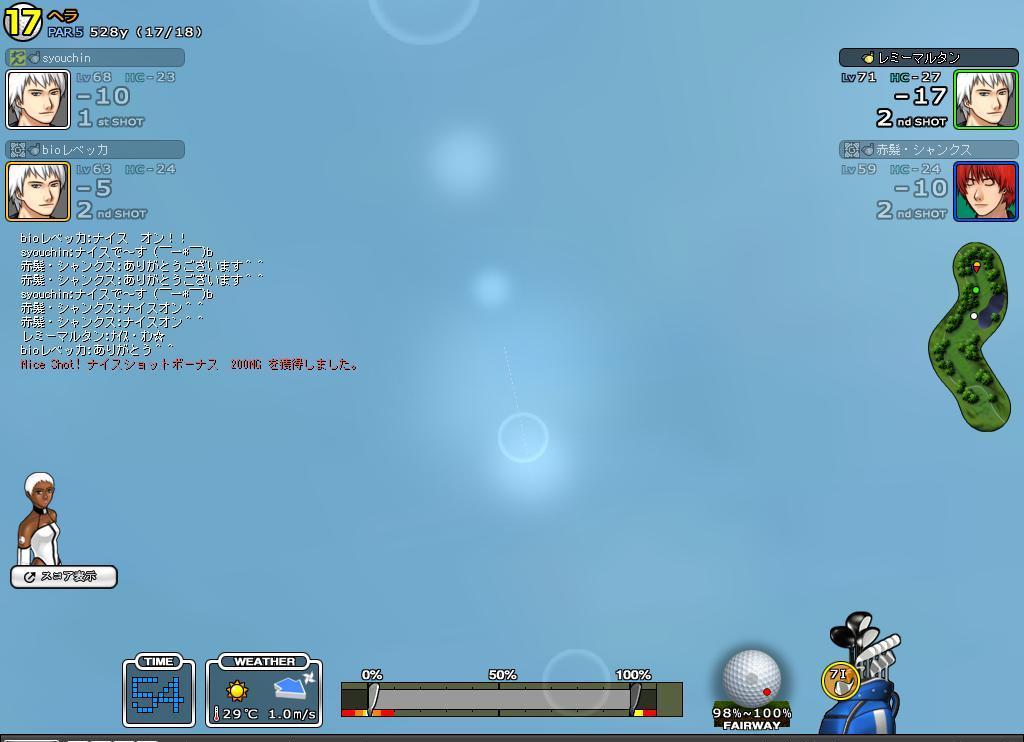 syouchinさんの友人で、以前ご一緒したことのあるbioレベッカさん、そしてもう一人友人の赤髪・シャンクスさんも加わり4人でのラウンドです。